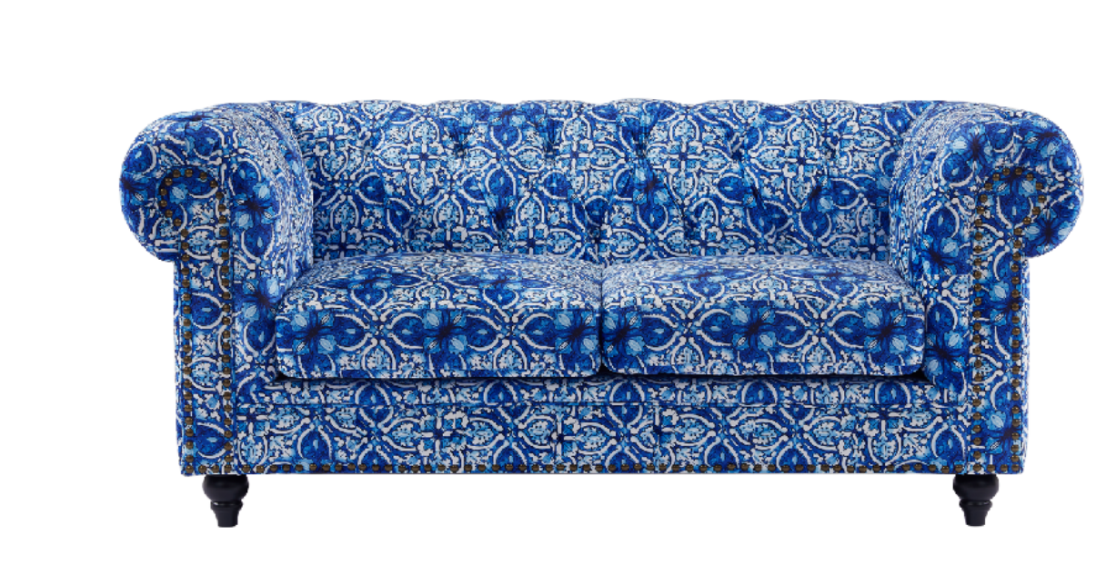 Introducing the Chesterfield Arm Chair Lounge in a stunning Blue & White Digital Print! This stylish piece of furniture is the perfect blend of comfort and sophistication, making it a standout addition to any living space. The classic chesterfield design is elevated with a modern twist, thanks to the eye-catching blue and white digital print that adds a touch of contemporary flair.
