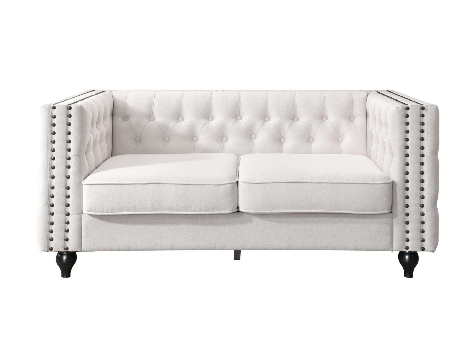 Introducing our elegant Mayfair 2 Seater Tufted Sofa in natural fabric – a timeless addition to any living space. This beautifully crafted sofa features antique bronze stud detailing and a classic tufted design that exudes sophistication and charm.