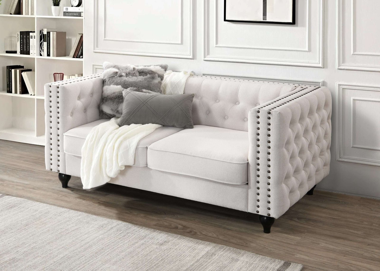 New! Mayfair 2 Seater Tufted Sofa Natural fabric
