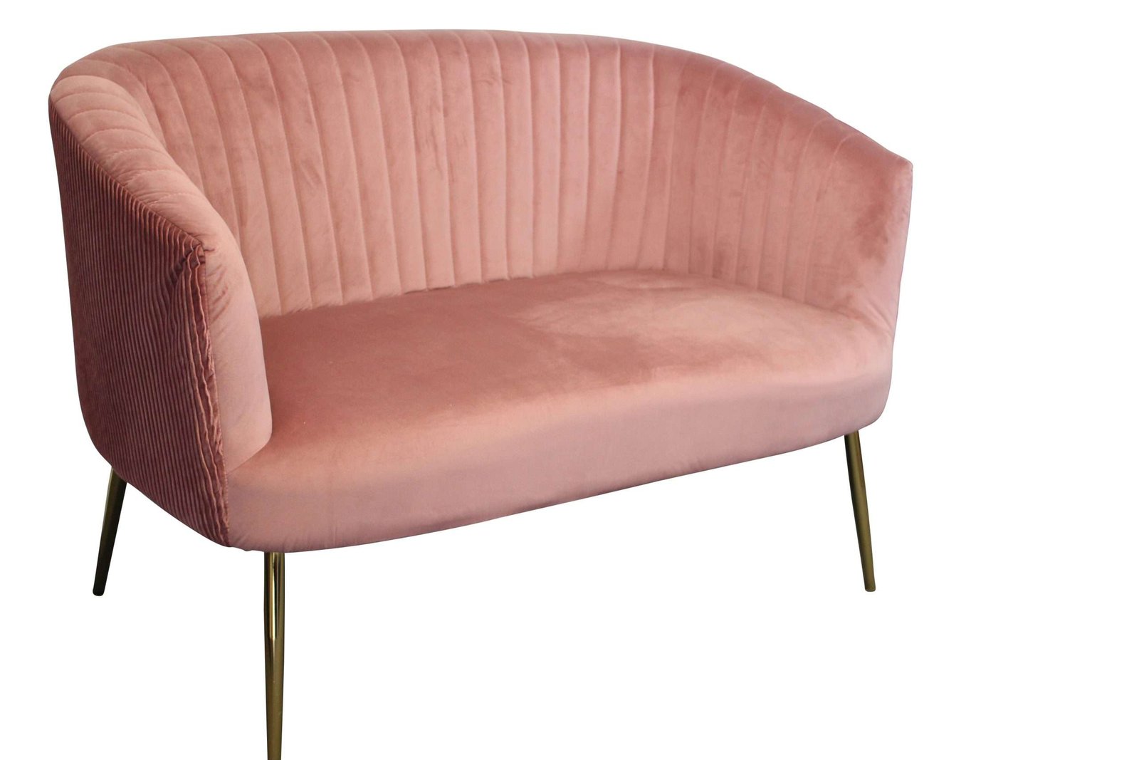 Perla 2 Seater Blush velvet fluted back Gold legs