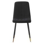 Introducing the Theo Chair in elegant Black velvet upholstery, perfect for adding a touch of luxury to any space. The sleek design features black steel legs with stylish gold tips, adding a modern and sophisticated touch to your home decor. With its compact dimensions of 77H x 55W x 43D and a comfortable seat size of 47H x 45W x 40D, the Theo Chair is both stylish and practical.